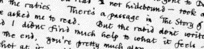 Survivors — I remember enjoying it (on the whole). I hadn't worked with the director before and he was amiable. Dennis Lill [who played the part of Charles] was easy to get on with. I had something interesting and difficult to do. The hotel was cosy. I have a memory of ambling across a field with Dennis Lill (both on horseback) and getting cold. The field was surrounded by drystone walls. The riding was painless — little was asked of me — it was just a chat on horseback. I'm not too keen on horses: they're heavy and unpredictable. I think the days were overcast, the weather at least autumnal. So it was good to get back to the hotel where I remember low rafters and real blazing fires. I think I remember Bernie Kay [who played the part of Sanders] setting his horse at a drystone wall and she wasn't a very keen jumper. There was a younger actor, good with horses, and he was capable or running five miles before work in the morning. I jogged a bit at that time too. For some reason I remember a five barred gate and a rough road with deep ruts. I think all this was in Derbyshire. [Episode director] Tristan de Vere Cole (is it really spelt like that?) who I remember thinking might have gone to Dartington — well off and well read and not hidebound — took an interest in the rabies. There's a passage in The Story of San Michele he asked me to read. But the rabid don't write much and I didn't find much help to what if feels like. In the end, you're pretty much alone and you just have a shot at it. We were in an isolated building and there was a yard at the back with a drystone wall. The building can't have been that ramshackle. In it the make up girls produced the froth for foaming at the mouth. Quite a heavy make up too as the character had knocked himself about. Dennis took a photo in colour which I still have somewhere. Several things were tried. I think there was cold custard. But in the end it was mostly white of egg. For foaming at the mouth. At the time I hadn't seen any episodes of the series. I watched some later and it appealed to me. It's a rich theme — humanity released from its usual restraints in a melancholy English landscape. I haven't done much telly lately: I seemed to be into priests and judges for a bit but that's dried up. I did my second King Lear recently at the Tabard. Currently, I'm doing a butler in An Ideal Husband at The Old Vic. I've been working on Shakespeare's sonnets for the last 5 or 6 years — for myself. Morris Perry |